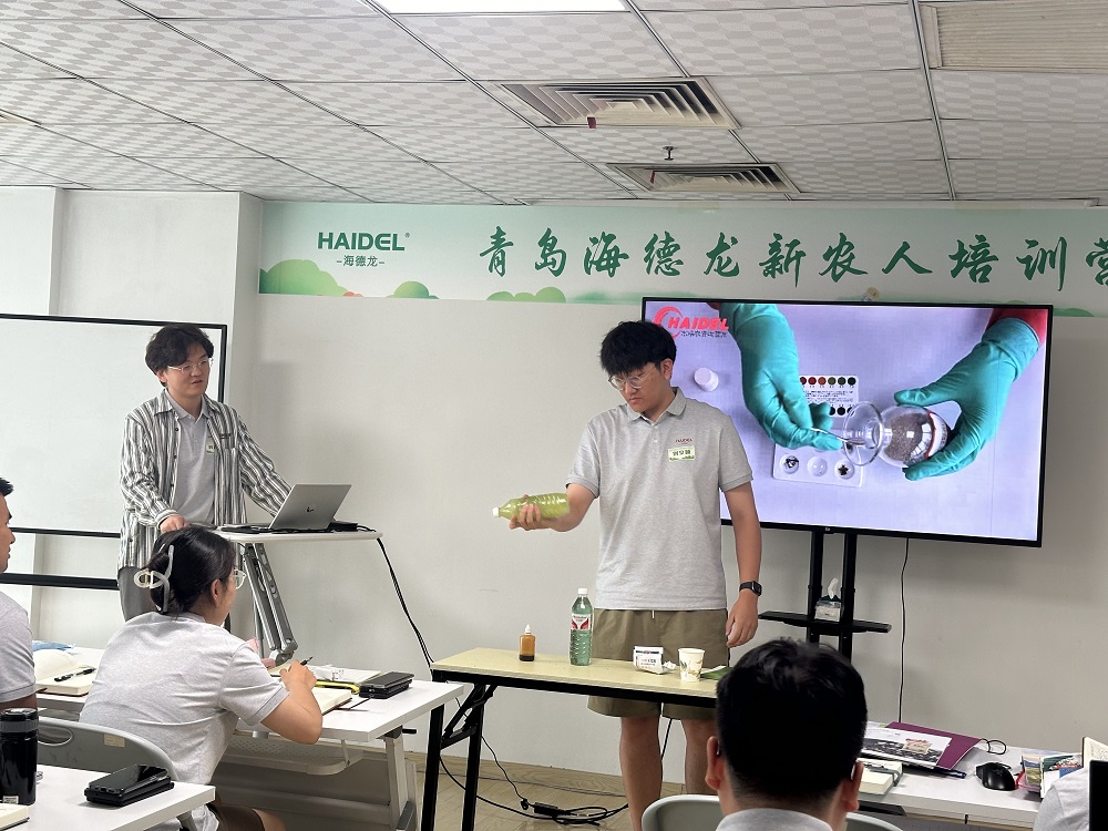 開營第一課,由海德龍總經(jīng)理韓廣奇親自授課。首先韓總對新員工的加入表示熱烈的歡迎,通過分析當(dāng)下和未來農(nóng)業(yè)的發(fā)展需求,對職場“新農(nóng)人”應(yīng)知應(yīng)會的工作技能提出了明確要求,并對新員工未來的職業(yè)發(fā)展做了全面的規(guī)劃。最后,韓總送出寄語,祝愿新人都能順利通過培訓(xùn)考核,盡快完成角色轉(zhuǎn)變,開啟人生的新征程!